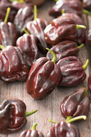 Enorm styrka. Bland världens starkaste. Habanero-sorterna tillhör några av världens starkaste chili. Växten ger gröna frukter med de karakteristiska Habanero-vecken. När frukterna mognar ändras färgen till en vacker chokladbrun. Fantastiskt komplex, fruktig arom med en ton av choklad och extrem styrka. Bör hanteras med försiktighet. Undvik kontakt med ögon och läppar. Det kan vara lämpligt att ha handskar på sig när man rengör och skivar så starka chili.